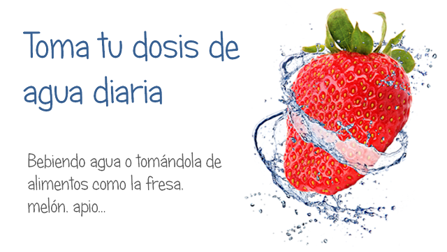 La forma más simple de ingerir suficiente agua al día es tener una botella de agua a mano para poder llevar la cuenta del agua que se ha tomado. Ten en cuenta que también puedes ‘comer agua’, ya que hay multiples alimentos cuyo elevado porcentaje de agua te ayuda a llegar a la dosis ideal. Algunos de ellos son: el pepino, fresas, melon, apio, lechuga, etc.